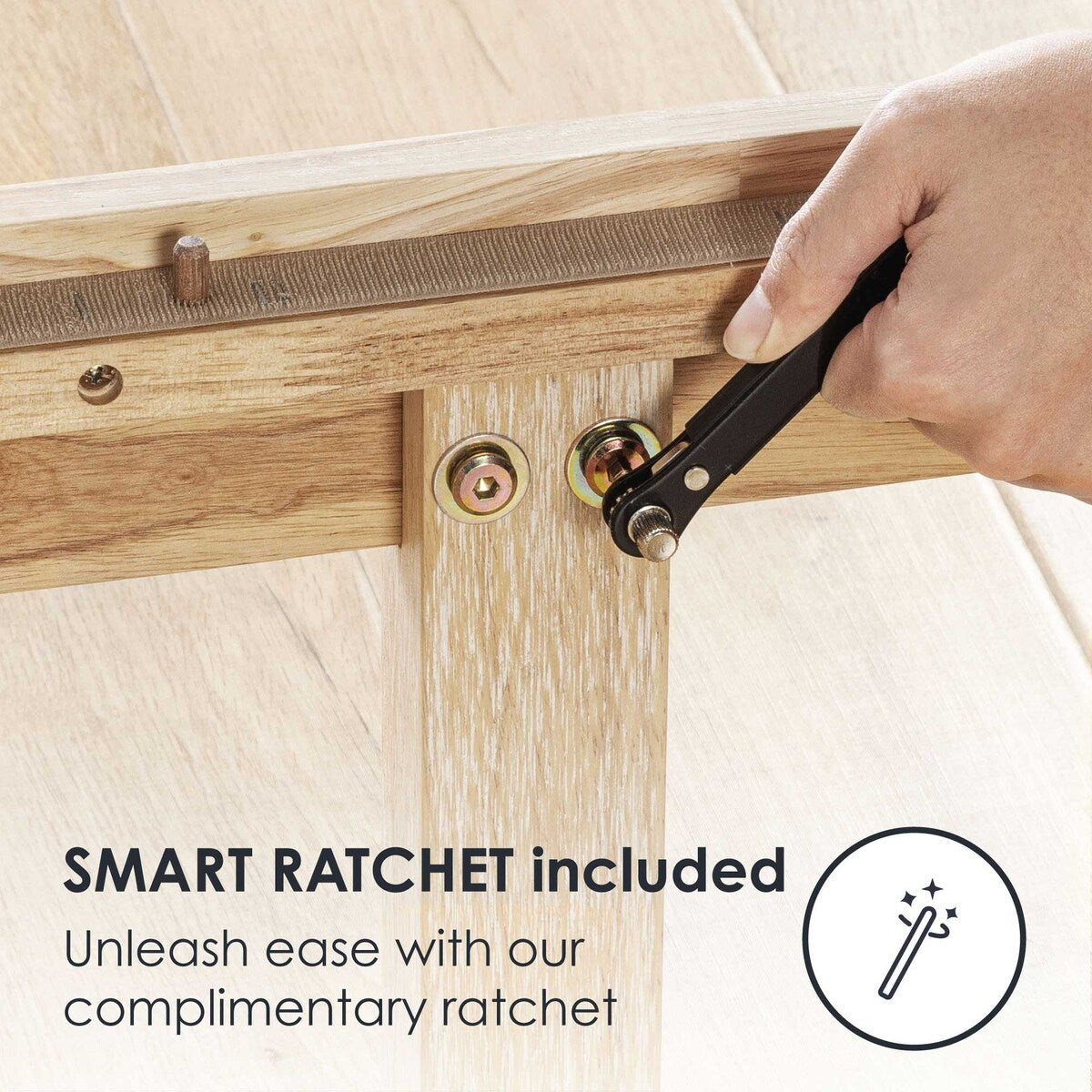Upgrade your bedroom with this Classic Solid Wood Platform Bed Frame that comes in multiple wood finishes to match your decor. The solid wood frame provides long-lasting support while the raised profile offers ample storage space for boxes and bins underneath. With easy-to-follow instructions and all tools and parts included, this bed can be set up within minutes without requiring a box spring.
