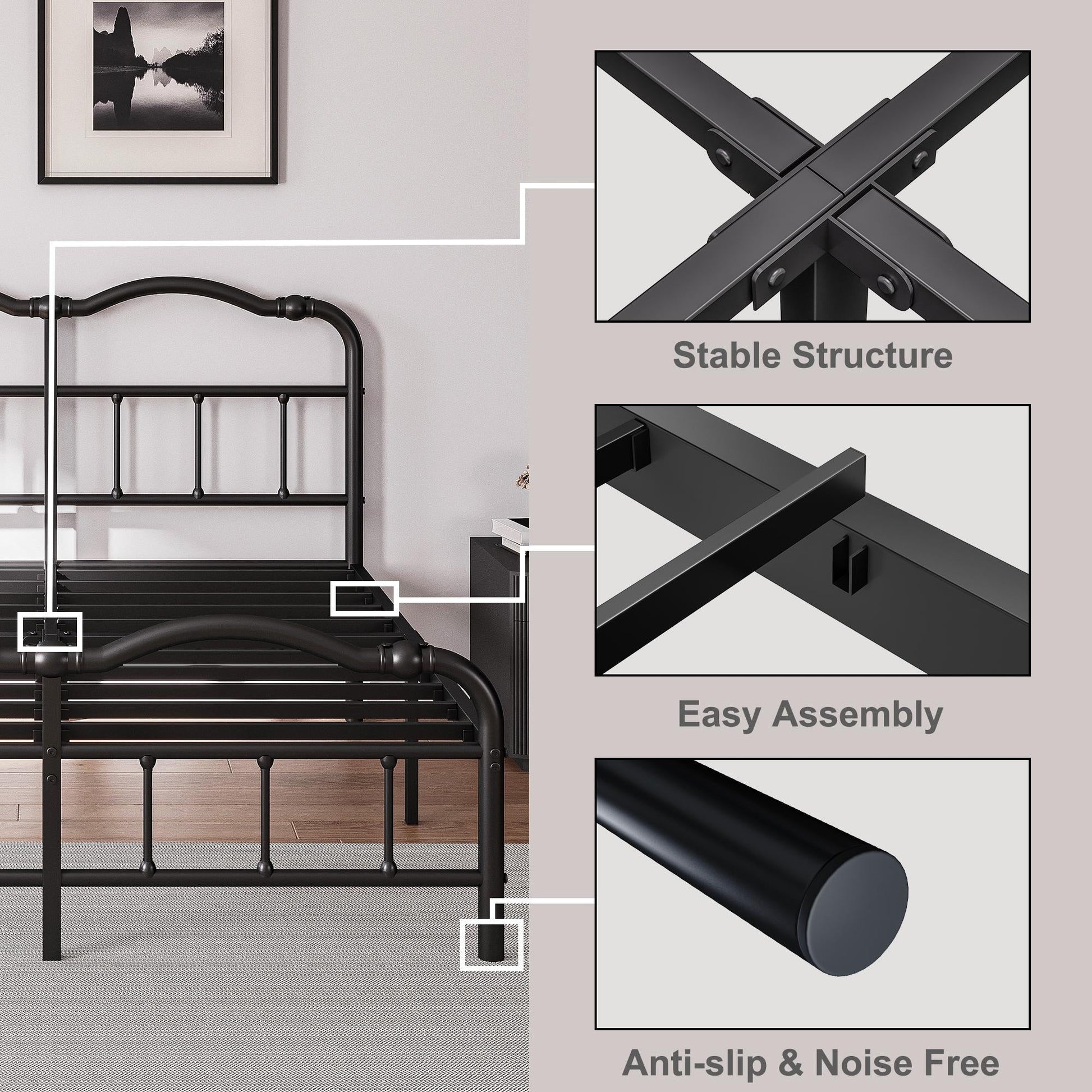 14 In High Heavy Duty Metal Bed Frame with Vintage Style, Supports Up To 2500lbs, Easy Assembly and No Squeak