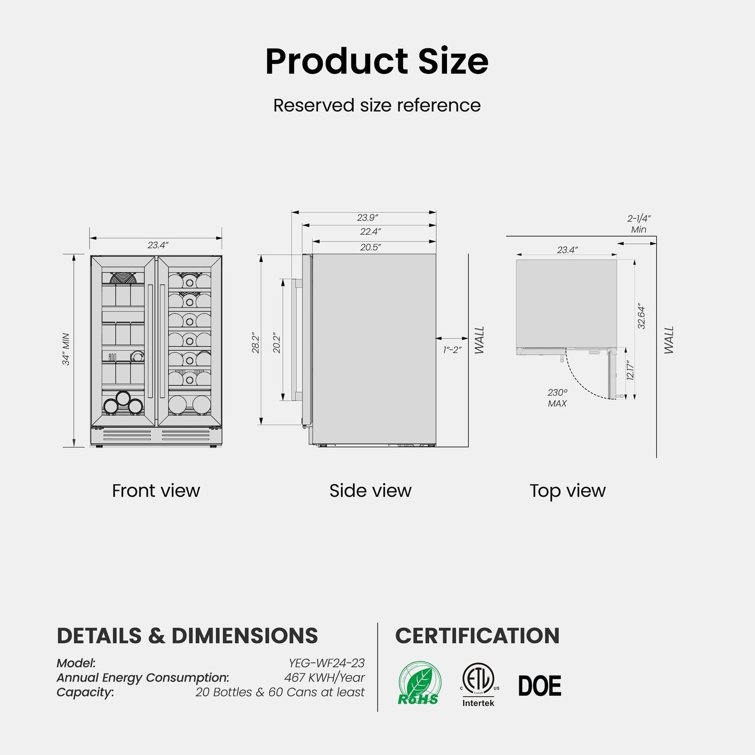 - Eco-Friendly and Efficient Cooling: Featuring R600a refrigerant and DOE certification, the Yeego Wine Beverage Cooler offers fast, even cooling while saving energy. The front-venting fan system enhances air circulation and heat dissipation, while the activated carbon filter removes odors, maintaining a fresh environment inside this wine beverage refrigerator.