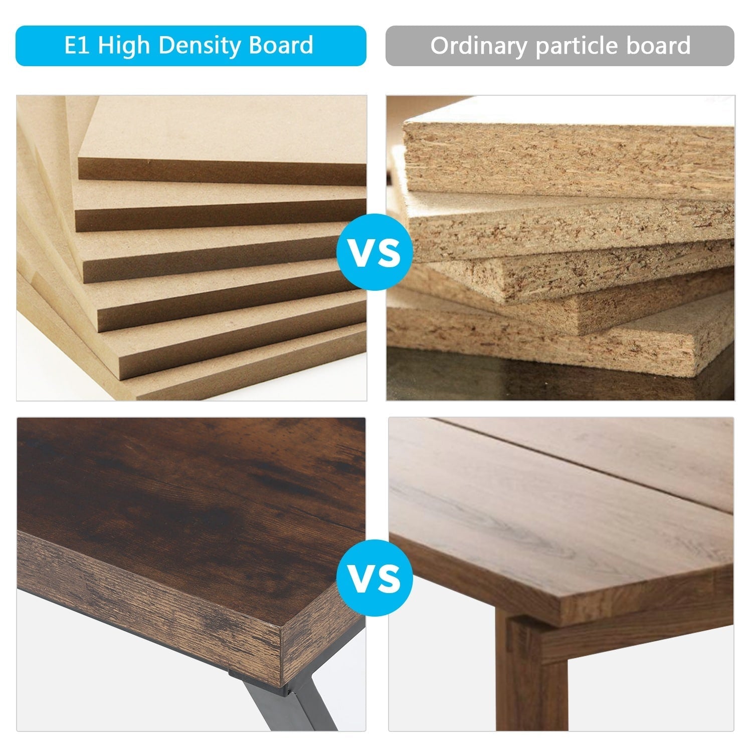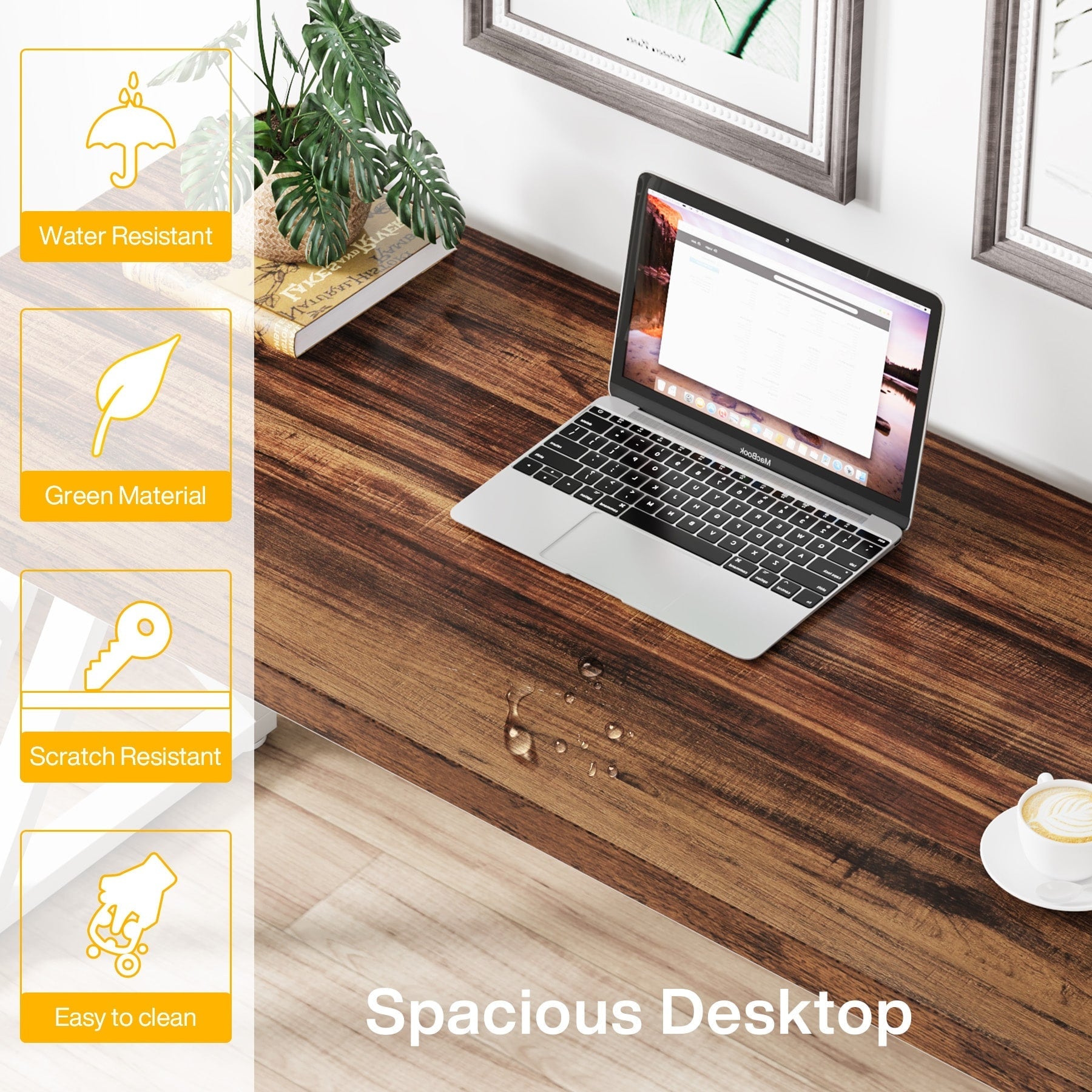 Upgrade your home office with this versatile and stylish 55' Heavy Duty Computer Desk. The rustic wood grain textured top paired with the Z-shape metal legs give your workspace an industrial and trendy look. With a high weight capacity of up to 330lbs, this desk can withstand heavy equipment and multiple monitors. The waterproof and deformation-resistant MDF tabletop ensures durability while the adjustable foot-pads provide stability on any surface. Assembly is a breeze, making it easy to elevate your workspace in no time.