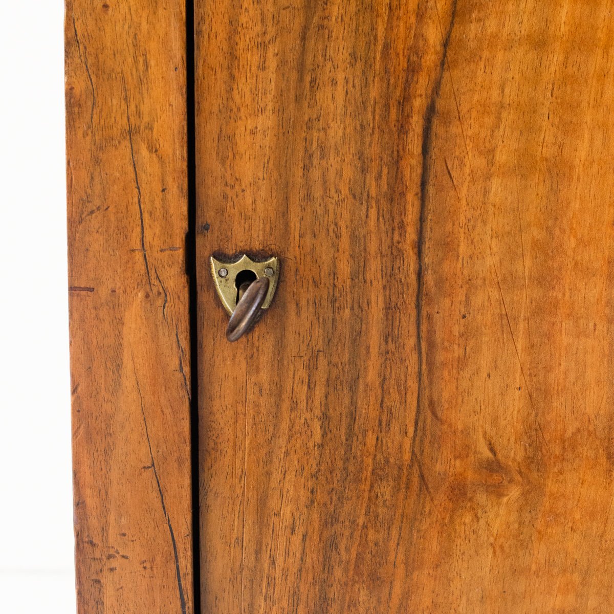 This petite cabinet is a beautiful example of old world craftsmanship. The two cupboard doors were crafted from a single piece of book-matched wood - the grain pattern forms a mirror image at the center. Then cut into two individual doors and matched again as they were installed so the butterfly grain flows down the front front of the cabinet.