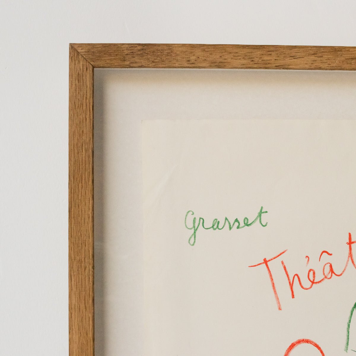 This original advertisement for a performance of Jean Cocteau's Theatre Complet was printed by Atelier Morlout for the Grasset Theatre in Paris. The art was created by Jean Cocteau for the event.