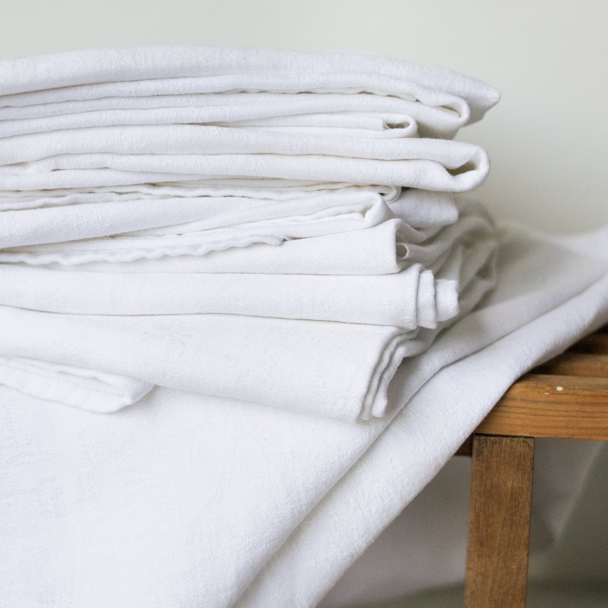 White linens are an essential for a well-stocked linen closet. Especially these vintage pieces that were collected one by one from flea markets across the French countryside. Some are monogrammed, some are not, all are beautiful.