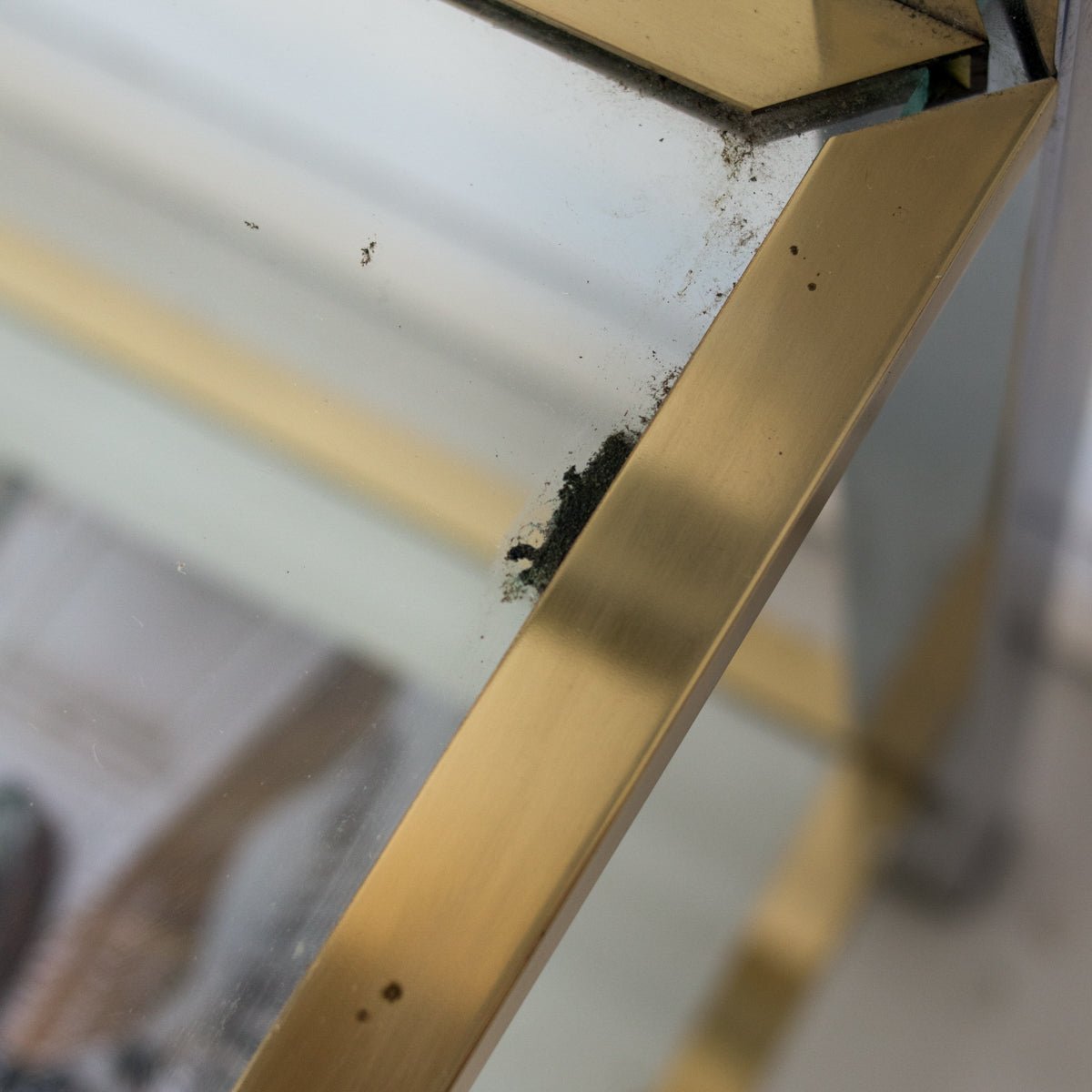 This nickel and brass console adds a bit of mid-century glamour to a room, but also knows how to take a back seat to a lovely leather sofa, or a reclaimed wood dining table.