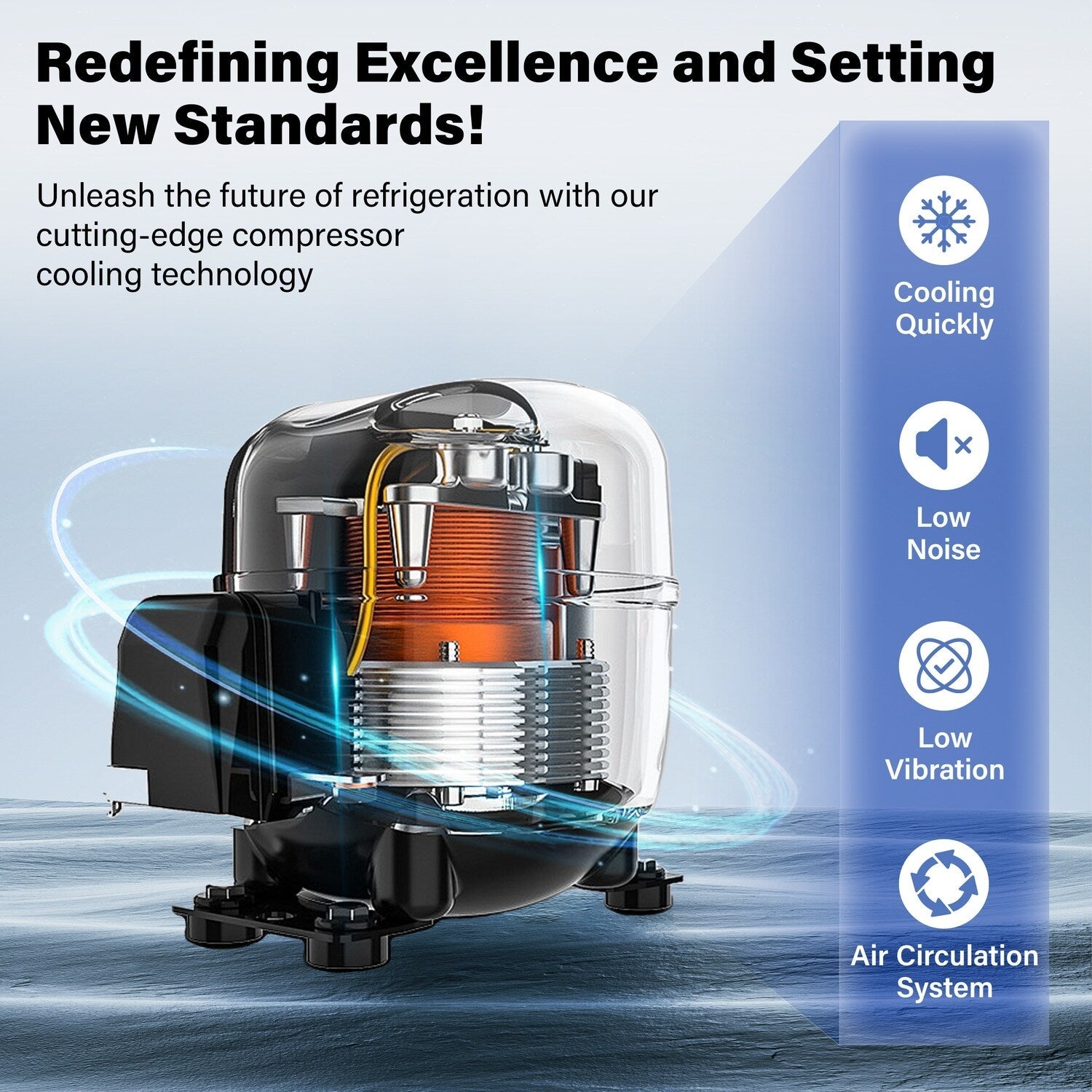 • Rapid and Eco-Friendly Cooling: Featuring advanced R600a refrigerant, this beverage refrigerator cools quickly and evenly within just 40 minutes. The eco-friendly cooling system is DOE-certified for energy efficiency, reducing your energy consumption and environmental impact while delivering powerful cooling performance.